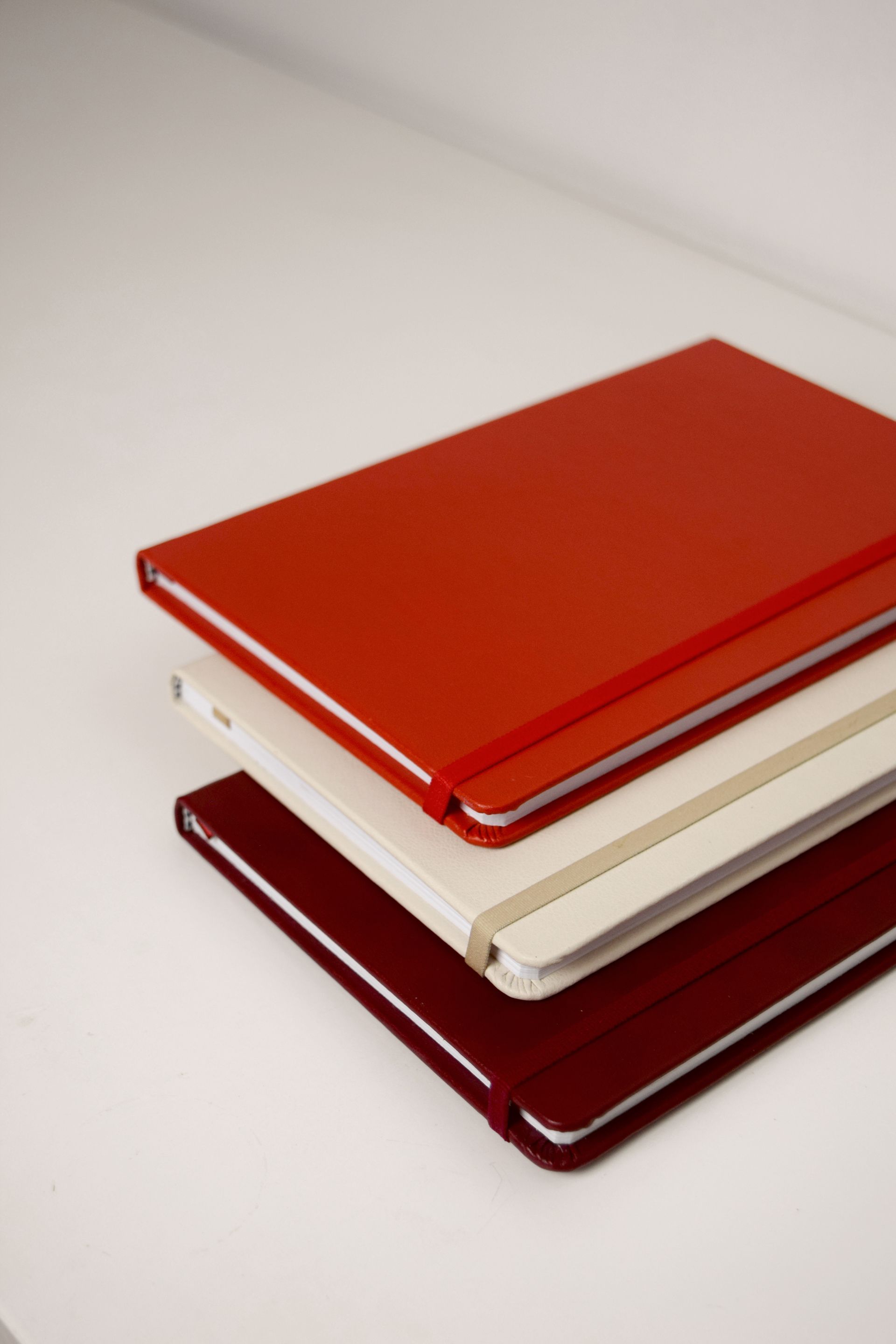 A-Z, archivadores de fuelle, revisteros, portadiplomas, agendas, divifolder, carpetas celuguía, libros portafirmas, cuadernos promocionales, pastas catálogo, además de productos en encuadernación a las necesidades del cliente. Libreta rayada o cuadriculada de aproximadamente 80 hojas, portada personalizable con cierre en caucho.